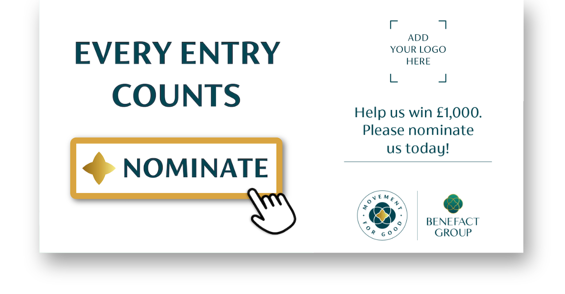 If you're a charity, use your logo to design your own bespoke card to ask your supporters to nominate.